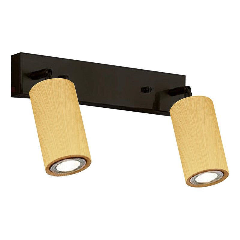 Plafón Aplique Infinity 2 Luces Acabado Madera Direccionales Estructura Negro